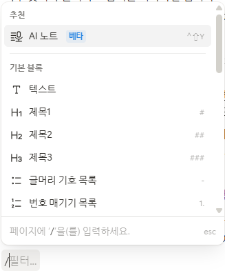 노션의 모든 콘텐츠는 '블록'으로 구성됩니다.